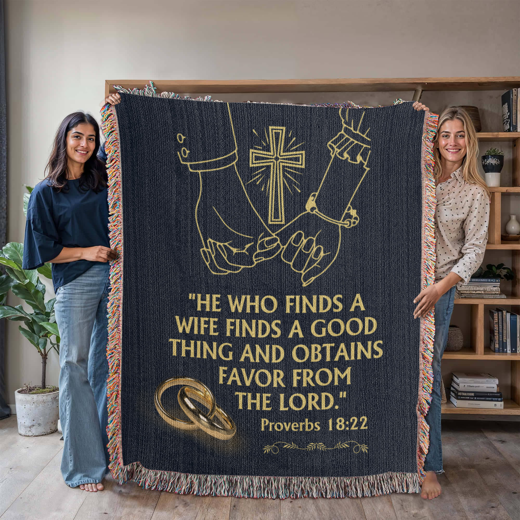 He Who Finds a Wife Woven Blanket – Proverbs 18:22 Faith Gift