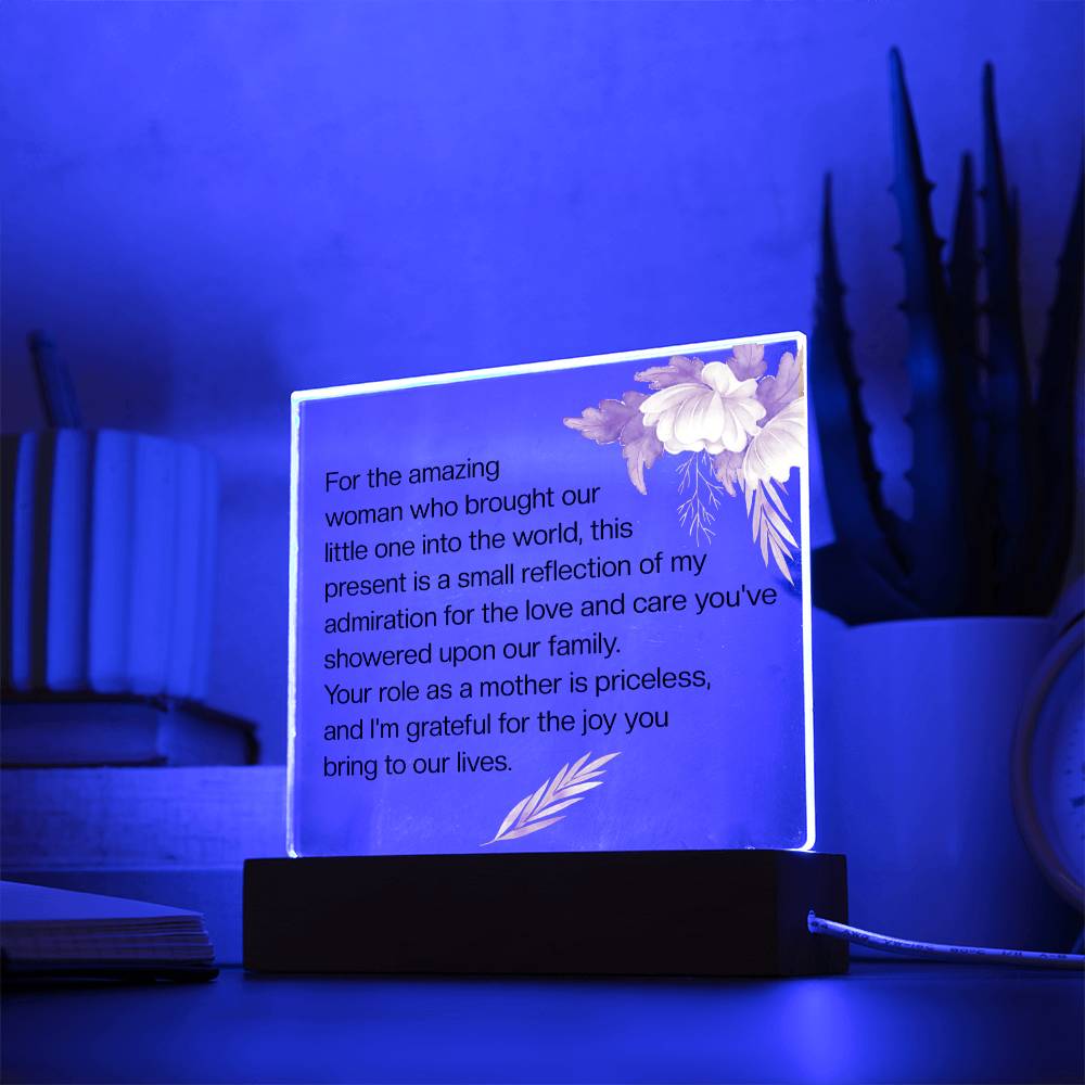 For the amazing woman who brought our little one into the world, this present is a small reflection of my admiration for the love and care you've showered upon our family. Your role as a mother is priceless, and I'm grateful for the joy you bring to our lives.