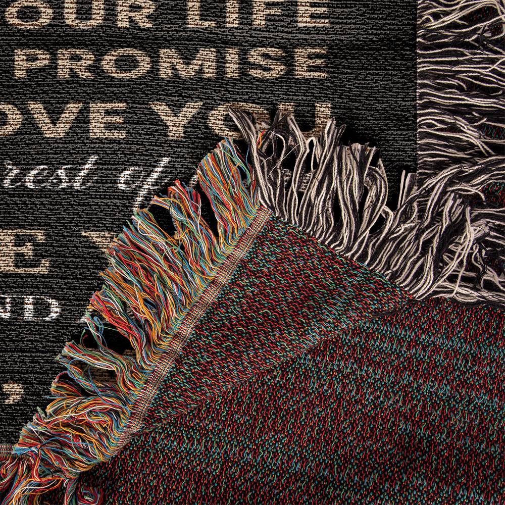 Create a unique keepsake with our Heirloom Woven Blanket. This piece is lovingly weaved on a loom with cozy, 100% cotton yarn and features your unique design. This would make an ideal gift for your beloved partner, family members, or dear friends on special occasions like birthdays, anniversaries, or any event where you want to express your love and appreciation in an unforgettable way.