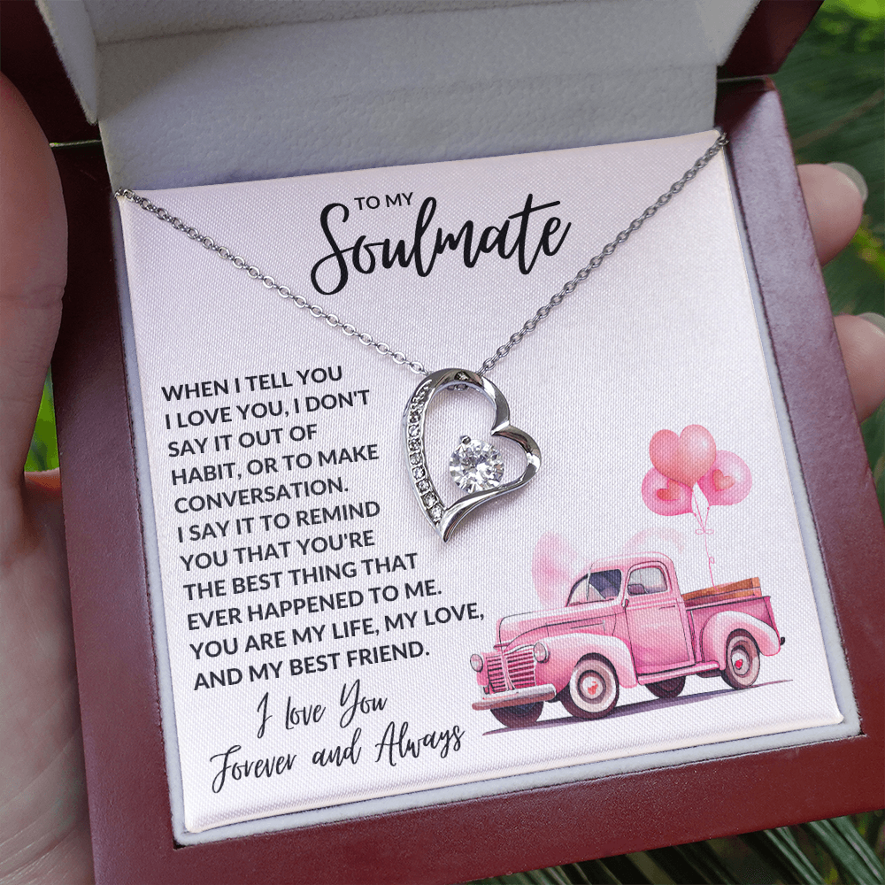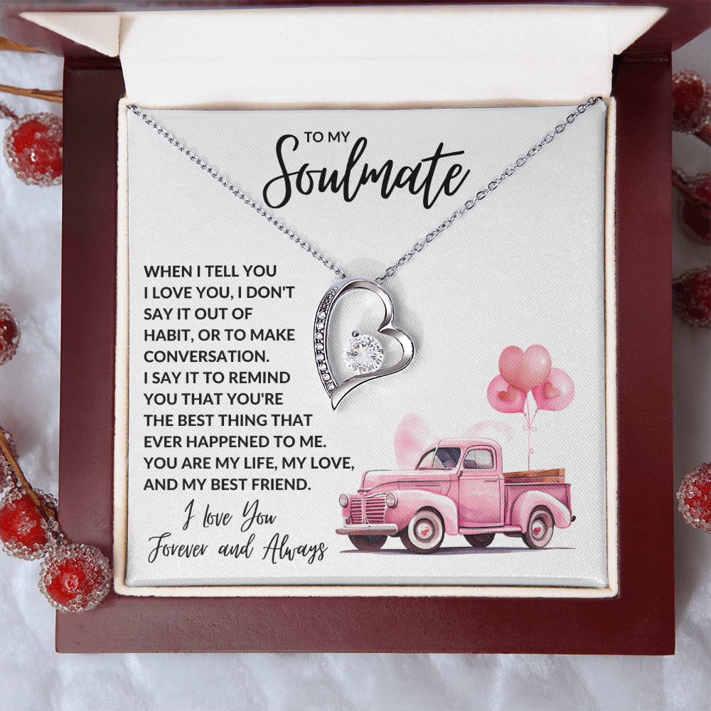 Imagine the joy on her face as she receives this dazzling Forever Love Necklace – a timeless symbol of your unbreakable bond. Featuring a stunning 6.5mm CZ crystal at its center, surrounded by a polished heart pendant adorned with smaller crystals, this necklace radiates elegance and love. Beautifully crafted with either a white gold or yellow gold finish, it’s the perfect romantic gift for your soulmate – whether she’s your wife, fiancée, or girlfriend. Surprise her with this meaningful keepsake for Valentine's Day, anniversaries, or any special occasion!